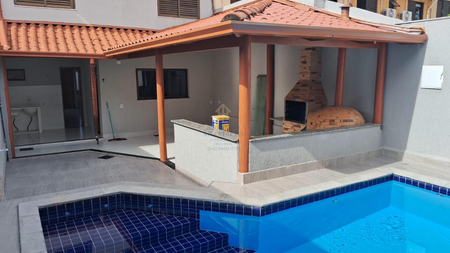 Area Gourmet com churrasqueira, forno de pizza, piscina aquecida com cascata e hidro e iluminação de led.