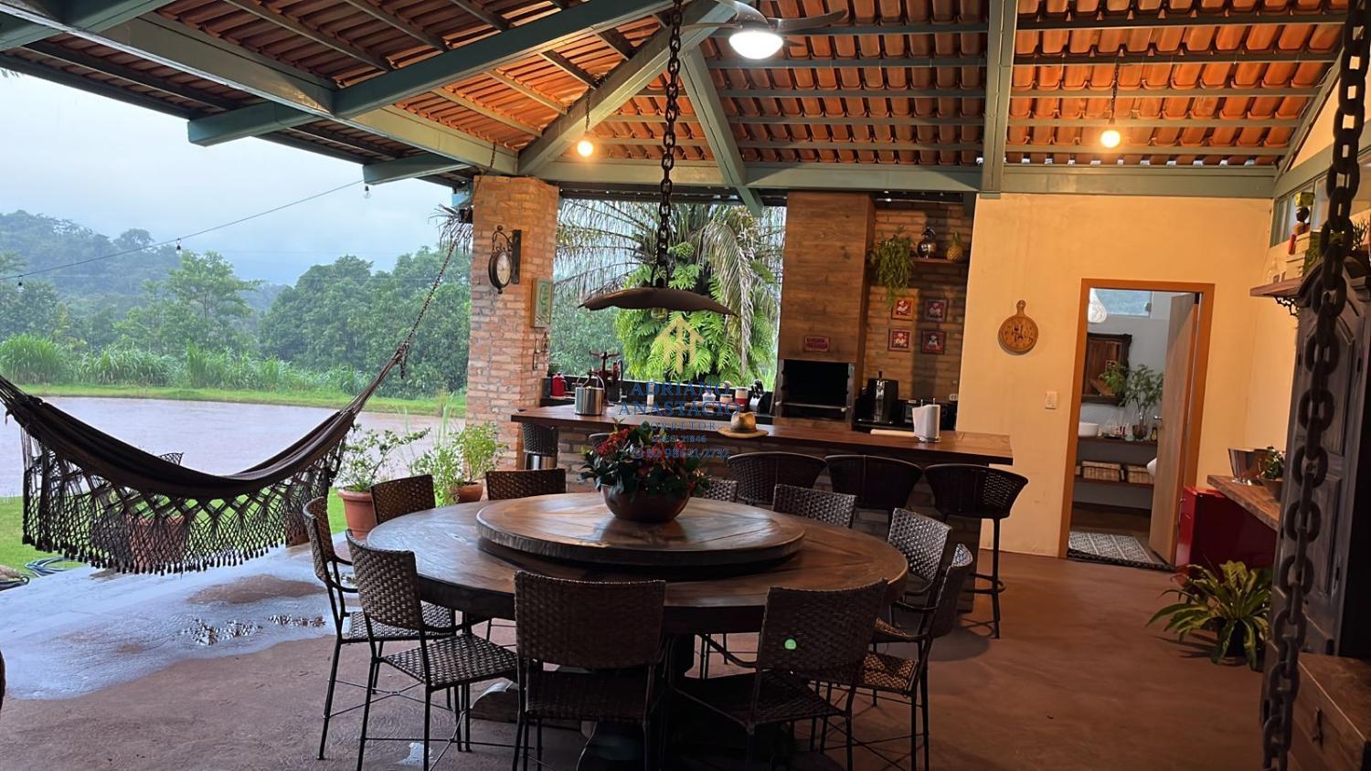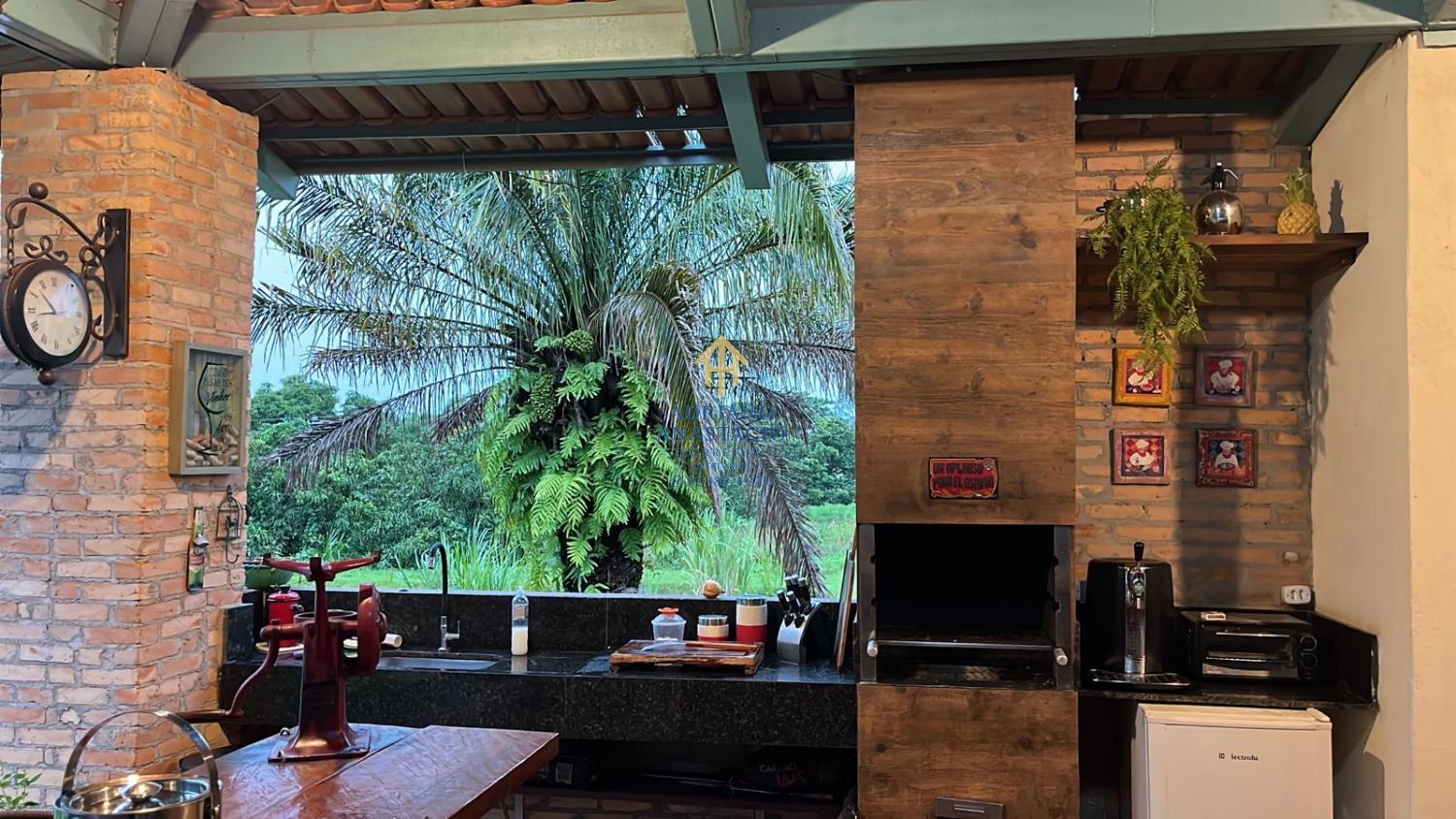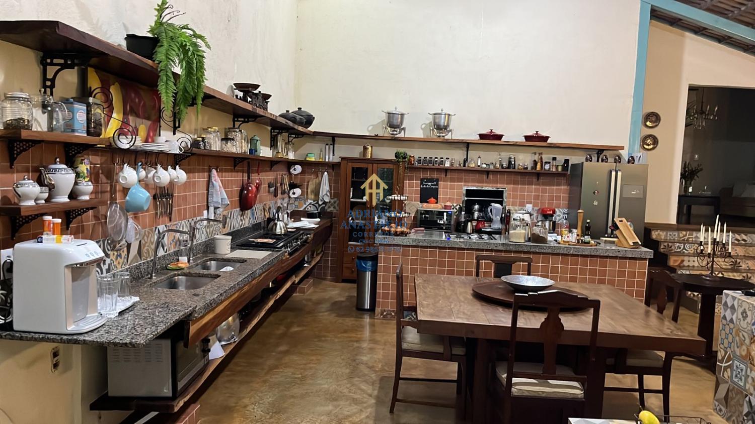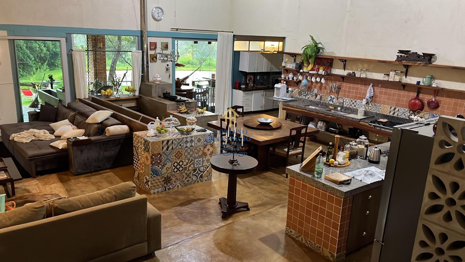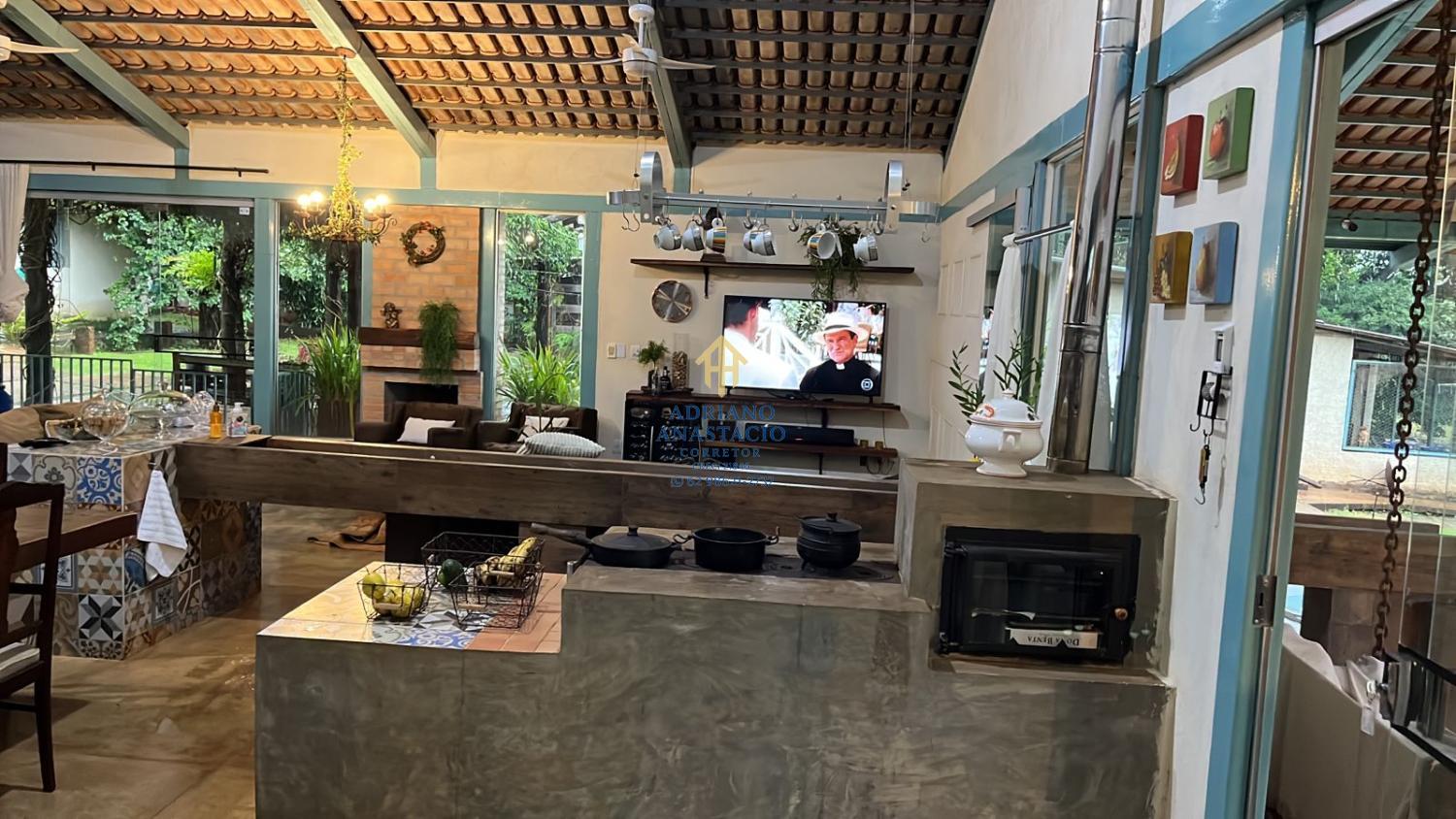 Cozinha conceito aberto (113m) com cinco ambientes. Lareira, sala tab., fogão a lenha e bica d?água.